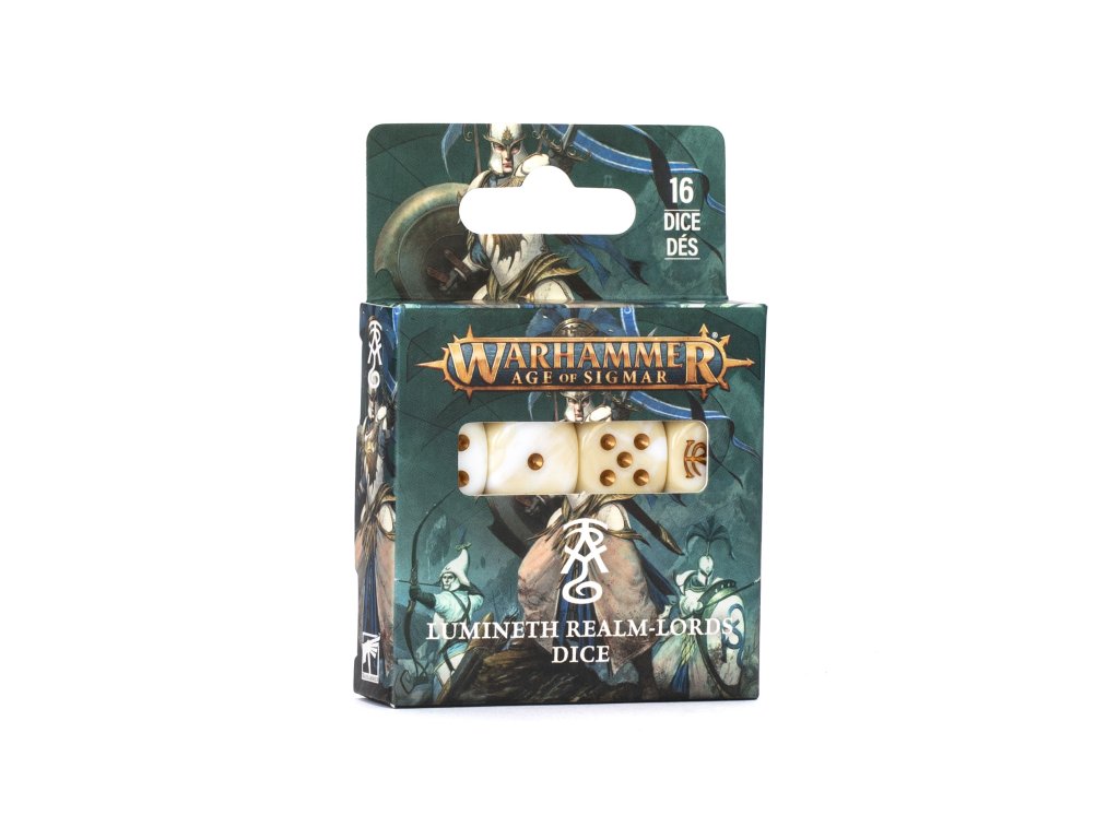 - 16x šestistěnná kostka - šestka je nahrazena symbolem frakce Lumineth Realm-lords