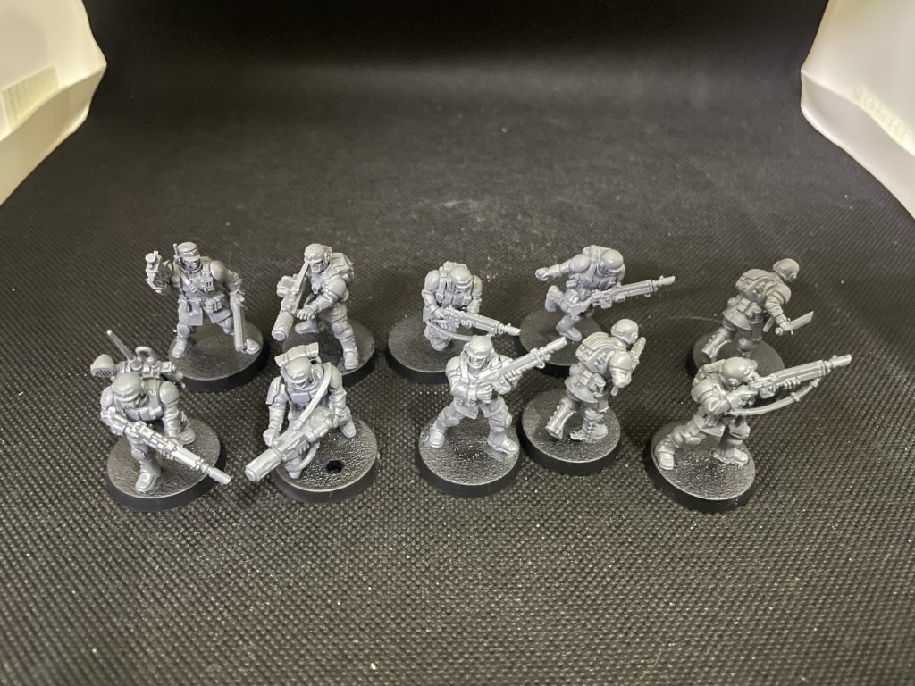 10x Cadian Shock Troops, Slepení, 1x Melta, 1x Granade Launcher + Bity