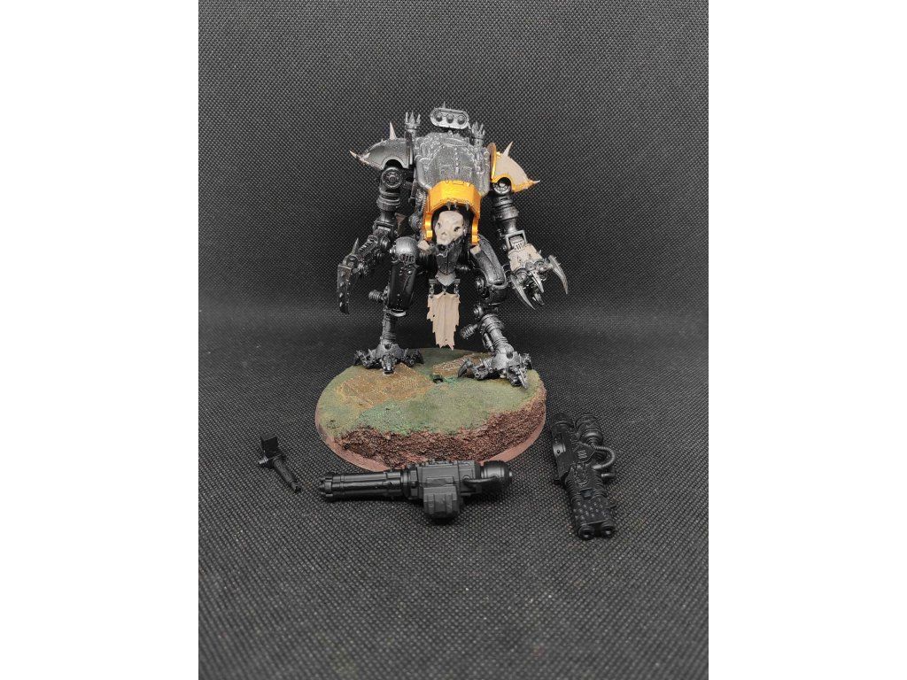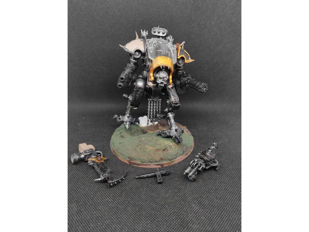 1x Chaos Knights War Dogs, modely jsou sestavené, zbraně jsou zmagnetizované tím pádem se dají sestavit jako všechny varianty