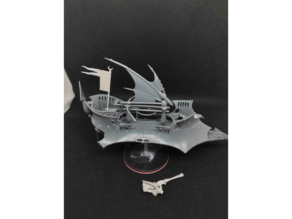 1x Drukhari Raider, model je sestavený, je přilepený k flying stemu, odlomená Dark Lance