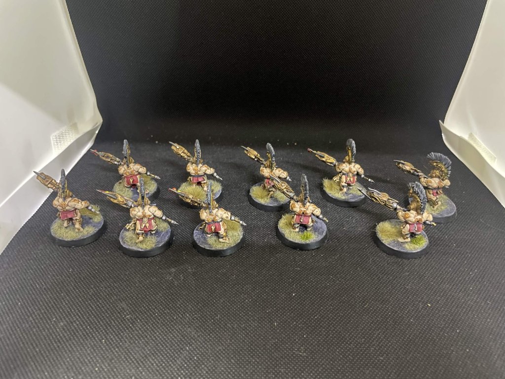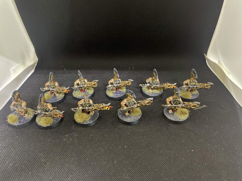 10 Fyreslayers Auric Hearthguard, nabarvení, magnety v podstavcích.