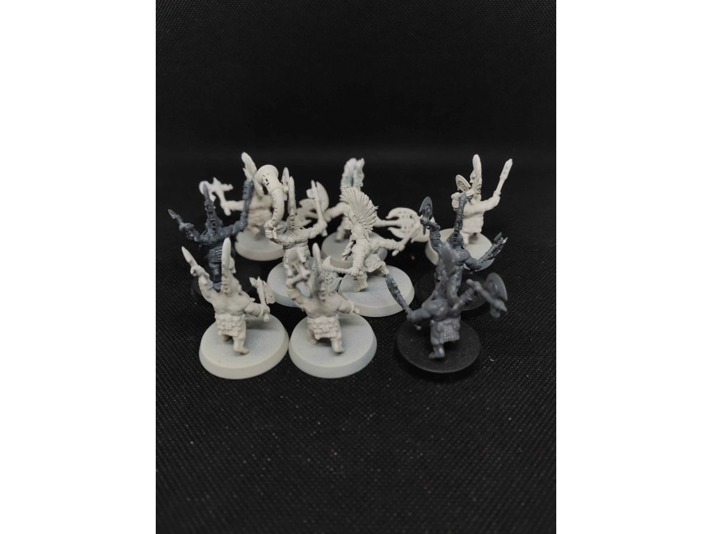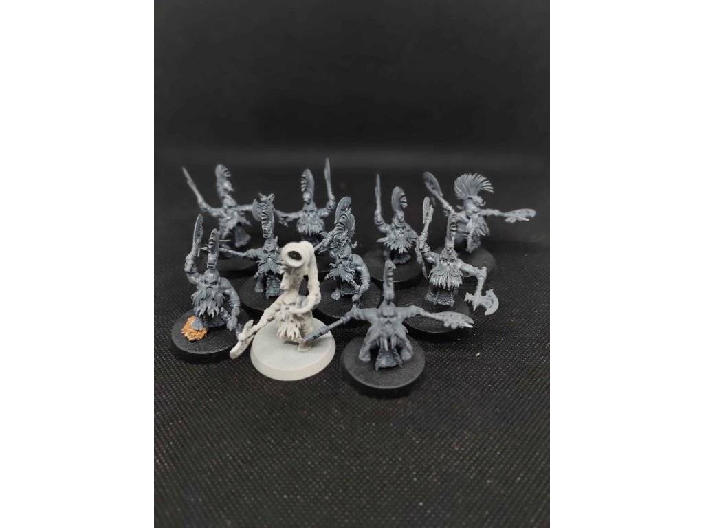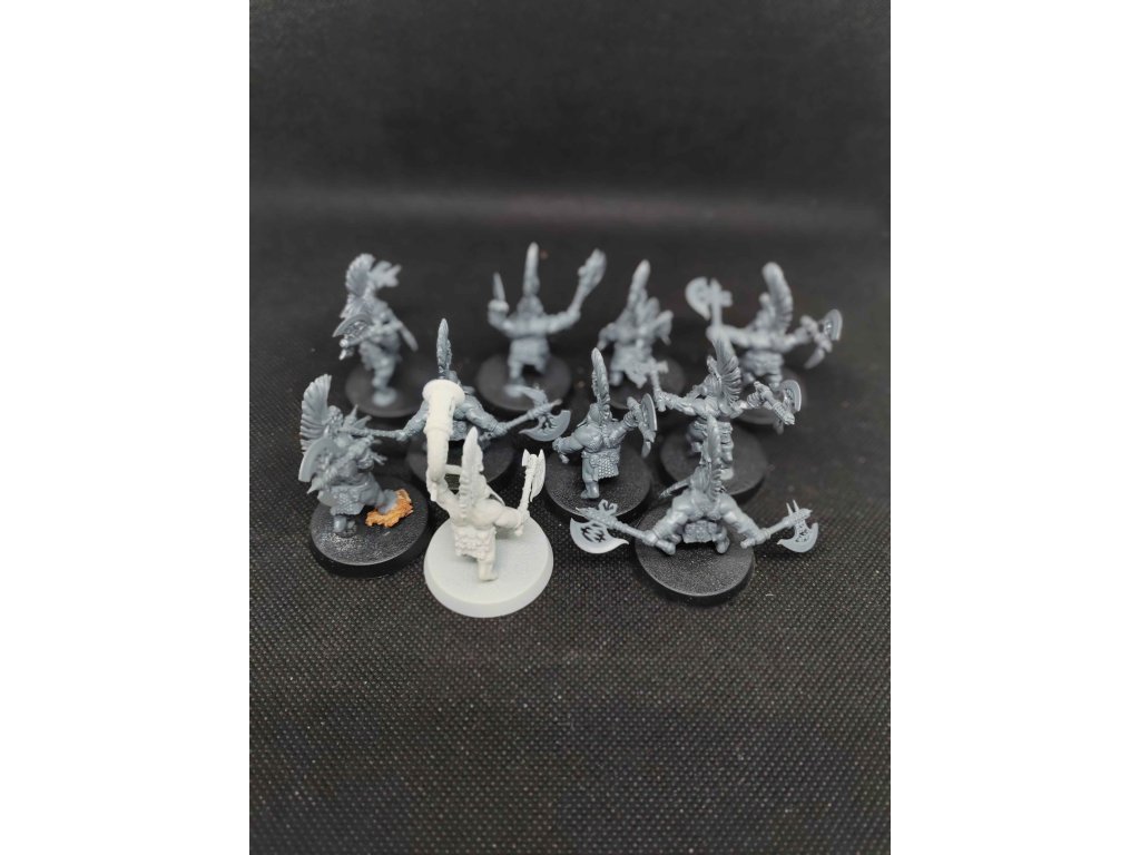 20 Fyreslayers Vukite Berzerkers with Fyresteel Weapons, 8 modelů stříknutý wraithbone základem, jinak slepený.
