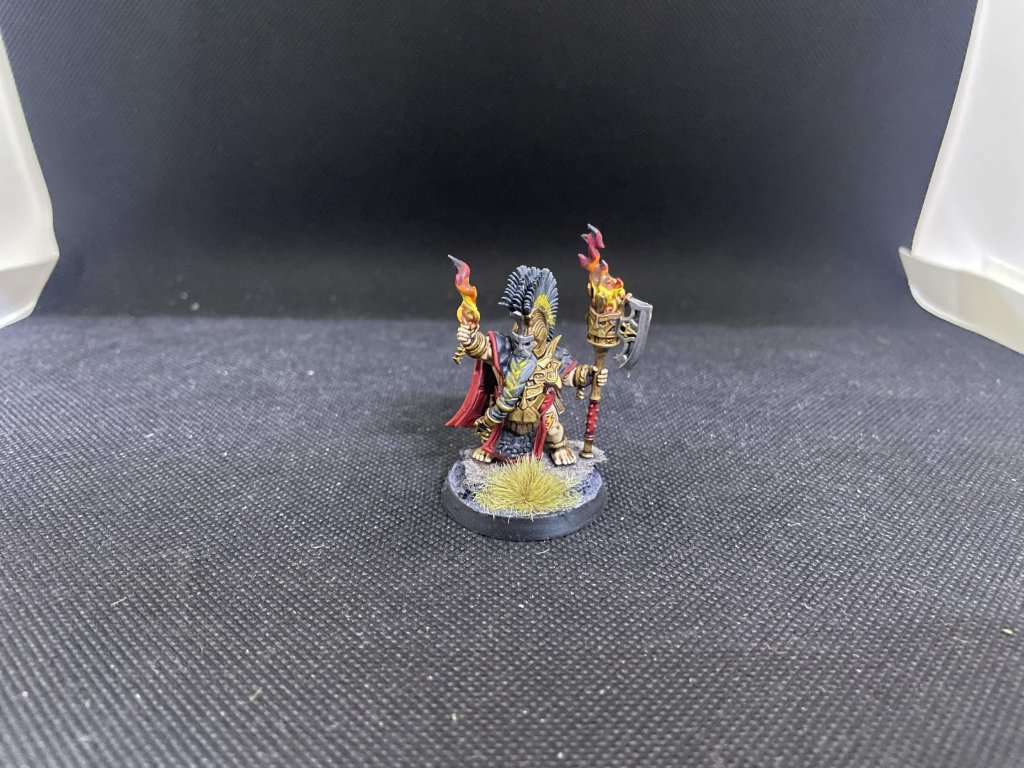 Fyreslayers Auric Flamekeeper, nabarvený, magnety v podstavcích.