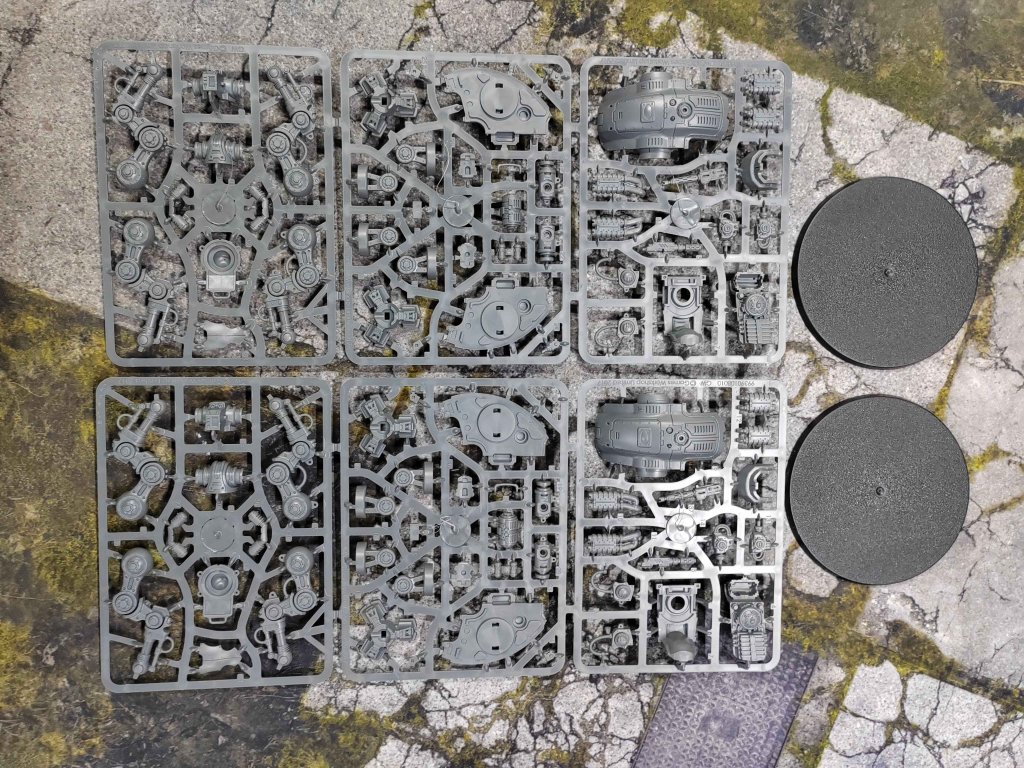 1x Imperial Knights Knight Armigers, modely jsou ve sprue