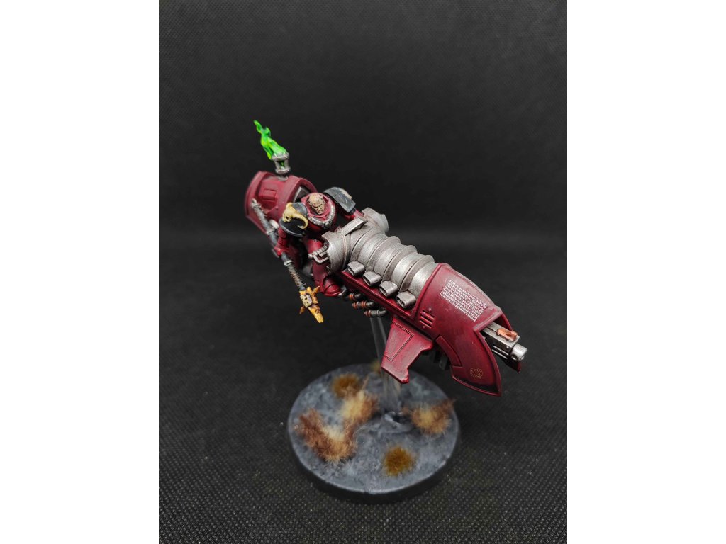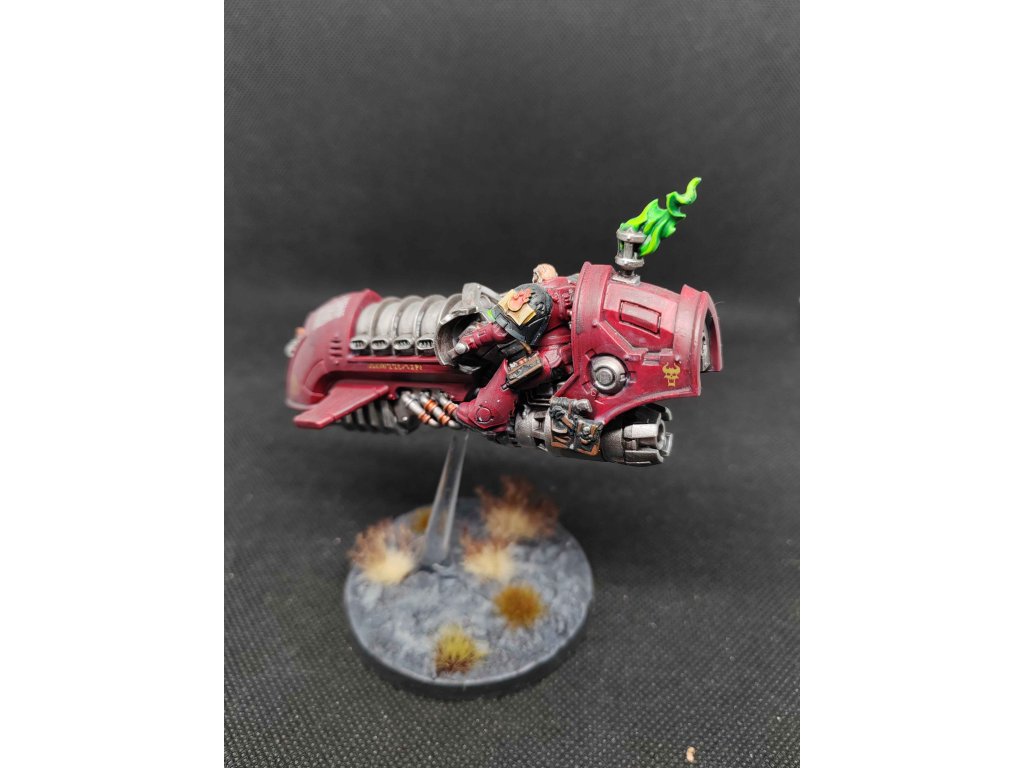 Librarian on Scimitar Jetbike s Heavy Bolterem. Model je v barvách Word Bearers.