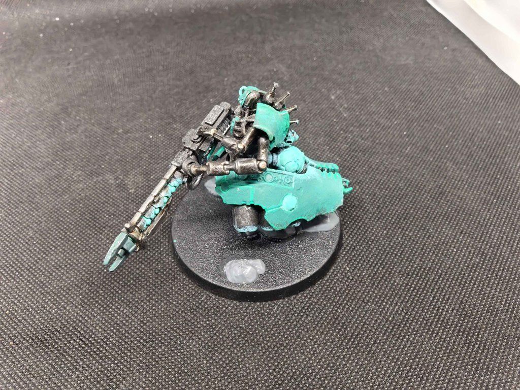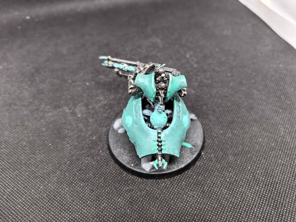 1x Necrons Lokhust Heavy Destroyer , model je sestavený, s černým primerem a a částečně nabarven.