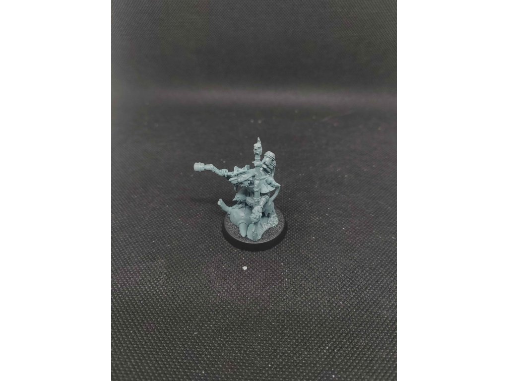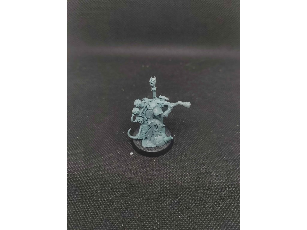 Skaven Engineer, slepený a stříknutý šedým základem.