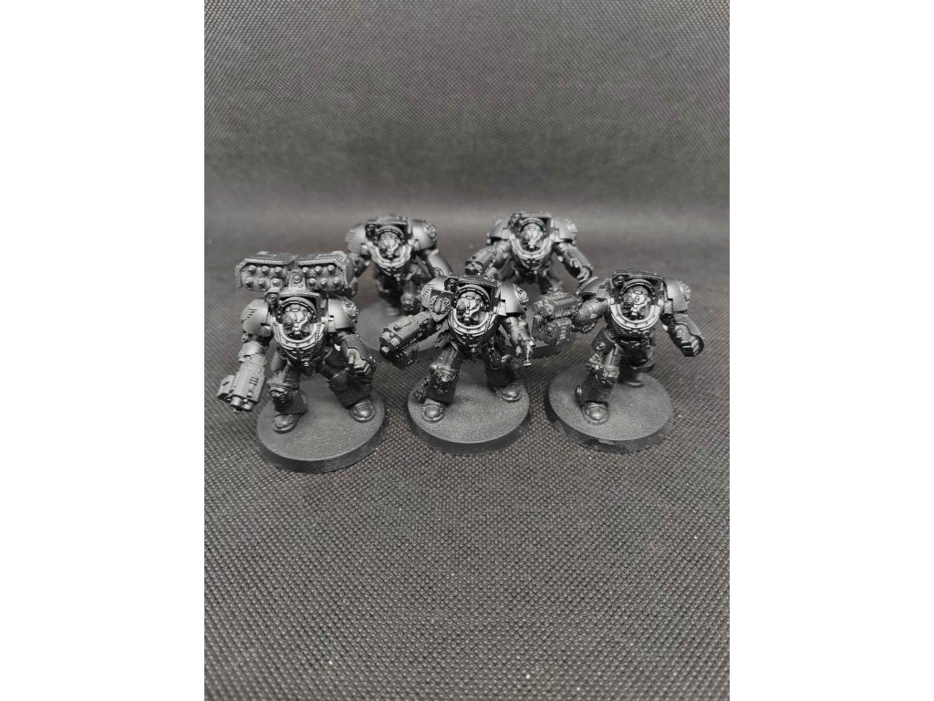 5 modelů Space Marines Terminator Squad, modely jsou slepené, černý primer