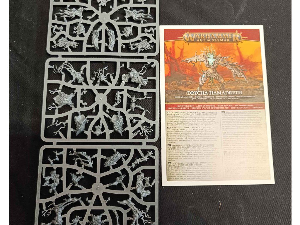 Sylvaneth Drycha Hamadreth ve sprue, podstavce a návod součástí.